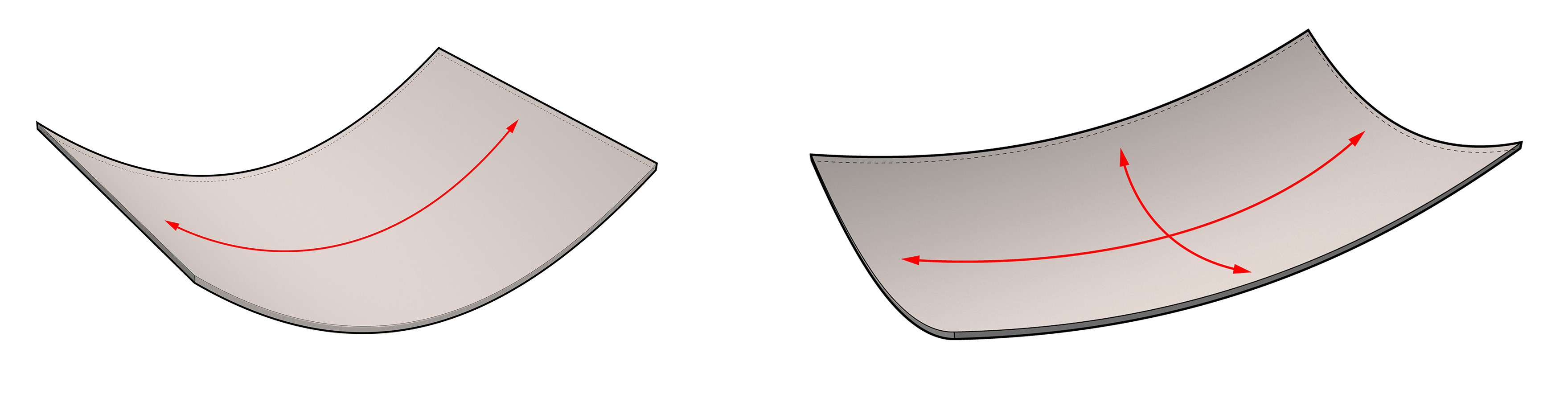 Take a sheet of copy paper and grip it flat in your hands. Next, gently push down evenly on both sides to form a smooth curve. Now, twist your left thumb up and your right thumb down. Ta-da! You have created a double-curved surface.